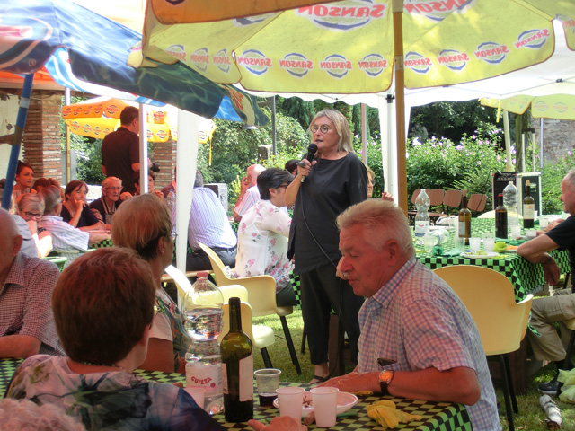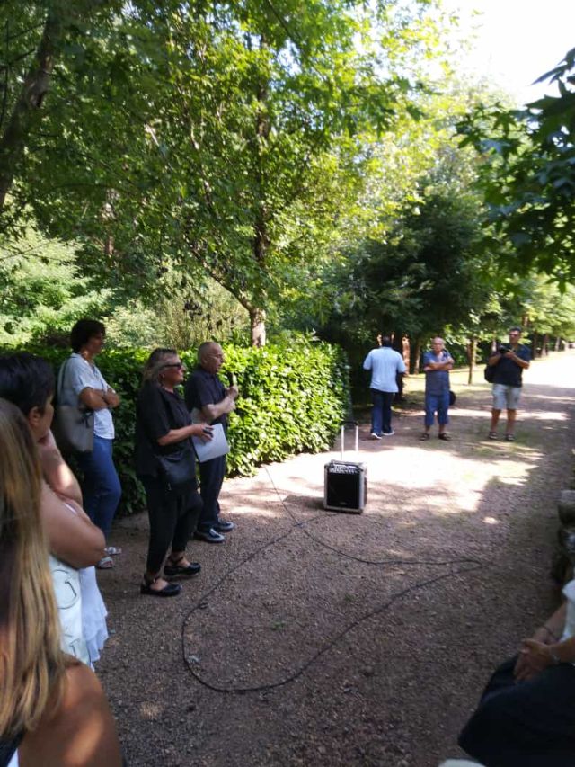 Al termine del pranzo Carla Crosio introduce la seconda parte della giornata dedicata al 20 anniversario della realizzazione e dell'inaugurazione della Via della Croce. Il suo discorso affronta coraggiosamente il tema più ampio del futuro del Molin Camillo: